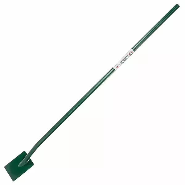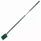 The Strainrite Power Post Spade is a heavy-duty fencing tool designed for digging deep and precise post holes, particularly for power post installations in demanding agricultural settings. With an extended total length of 1800mm (71") and a 1595mm (63") handle, it provides exceptional leverage for penetrating tough soils. The 205mm (8") wide blade, crafted from durable bisalloy steel with a slightly cupped design and straight cutting edge, efficiently lifts dirt while maintaining cutting precision. Its extra-long straight shaft, reinforced with a high-tensile inner tube, ensures superior strength and durability without a traditional handle, allowing for direct force application.