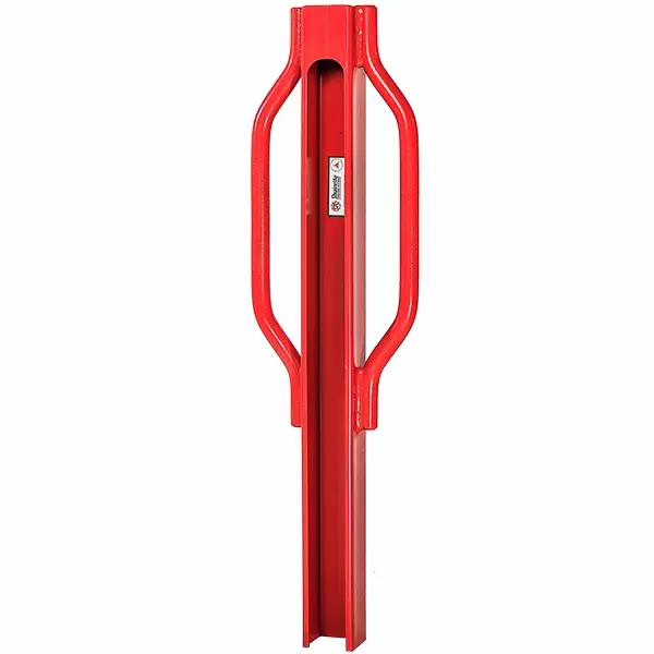 The Strainrite Slotted Batten Driver is a durable and ergonomic manual tool designed for efficiently driving slotted battens into the ground during fencing installations, making it an indispensable asset for farmers and contractors working with wooden or composite battens in permanent or semi-permanent fences. Constructed from solid welded steel with a robust design, it accommodates standard slotted battens up to 67mm (2.5") in size, featuring an overall height of approximately 800mm (31.5") for optimal leverage and stability. Its improved engineering minimizes noise and reduces shock transfer to the operator's hands, enhancing comfort and safety during prolonged use while extending the tool's service life through reduced wear.