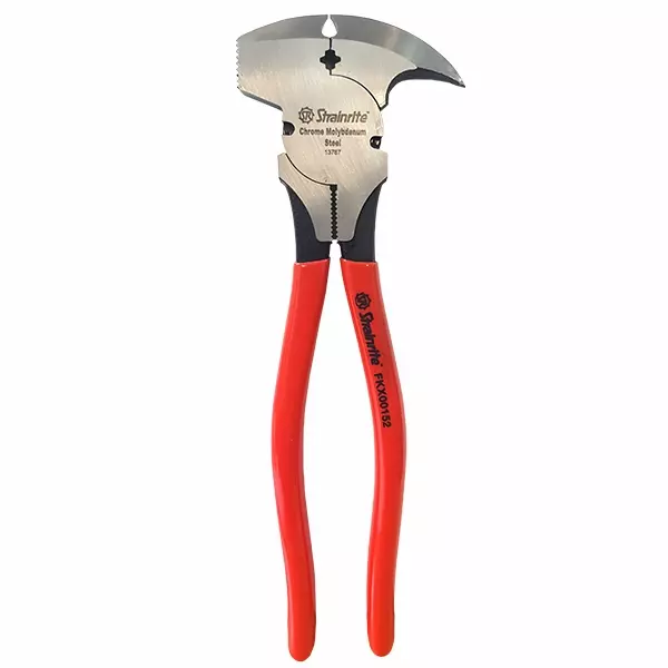 The Strainrite Fencing Pliers (model MK2, SKU: FKX00152) are a versatile, all-in-one tool designed for professional and DIY fencing tasks, particularly in agricultural and livestock fencing. Manufactured by Strainrite Fencing Systems in New Zealand, they combine multiple functions into a single, durable device, making them a staple for farmers, contractors, and rural workers. They're optimized for high-tensile wire, staples, and general fence maintenance